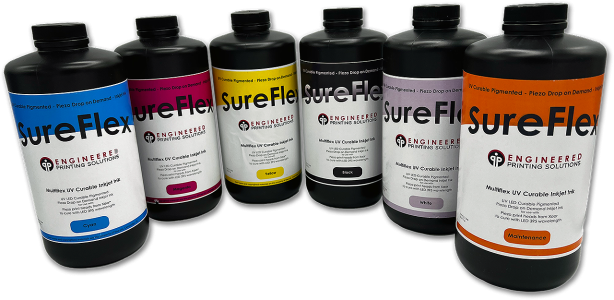 Some of our ink series are displayed below, along with substrate pairings that have worked for us in the past. Please Note: Many of these applications required pretreatment. Contact your Sales Engineer to inquire about adhesion testing.